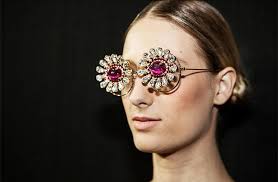 FH by Fause Haten was well noticed with the girl models wearing eyewear which was bling bling. The girl models on the runway / catwalk for FH by Fause Haten wore the highly decorated glasses to good effect.