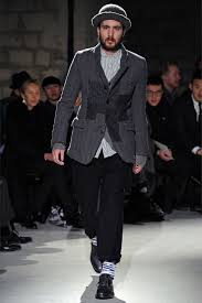 The clothing collection which was being shown for the seasons of Autumn Winter 2013 2014 at Paris Fashion Week for men by fashion designer Junya Watanabe were brilliant creations of an innovative mind at work. Junya Watanabe takes us on a journey with his brilliance for the arts. Junya Watanabe has in this current clothes collection brought the classic actor from the silver screen silent movie films back to our plasma LCD TV television screens, in the DesignerFashionStyle of Charlie Chaplin, designer fashion style. The star of this fashion show was Junya Watanabe and his inspiration Charlie Chaplin, whilst Charlie's movies may of been silent this clothes line speaks volumes.