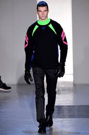 The designer for Mugler who is Nicola Formichetti designer the clothing collection for Autumn Winter 2013 2014. Mugler did not take ispiration from bleak dark winters nights or rather maybe did, as glow in the dark bright neon colours would become highly visiable and effective. The colours which shone during the Mugler clothes show were Pink, Green and Blue although black was also used in the creating of the garments. The look of the Mugler clothes line was reminding me of something, workwear and uniform or uniformed work-wear. I really like the utilitarian styled designs by Mugler which were duller in colour, the suits which are available are fetching. Mugler's designer's have created exciting 1980's fashions with illuminious clothing but where is the terry towelling socks. Any how Thierry Mugler has created fashion for a while maybe this collection shines to alert him, Over Here ! or ... Beam Me Up Scotty !
