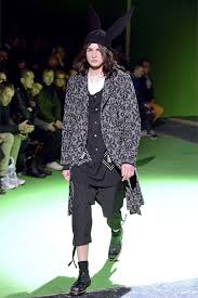 This Autumn Winter 2013 2014 clothing collection designed by Yohji Yamamoto was unveiled at Paris Fashion Week for men. Yohji Yamamoto has in his past clothes collections created with a flair and decadent reminder of style and individuality, in this Yohji Yamamoto Autumn/Winter 2013 2014 clothing collection he once again brings to the fore his passion for fashion. Yohji Yamamoto knows how to have fun and playful in his fashion clothing collections and is a most talented master tailor designer. In this Yohji Yamamoto clothes line he is Hair Today, a man of distinctive taste and astute gentlemen, decadent dandies, separating the men from the boys with accessorizing the fashion clothes show with the flambouant facial hair, moustaches and beards of all type style and design which the male models sported splendidly. The A/W 2013-14 Yohji Yamamoto show presented clothing in double breasted suits, tweed, zebra print, tartan, kilts, skirts, jackets coats and trousers. For Yohji Yamamoto fashion faux or au naturale.
